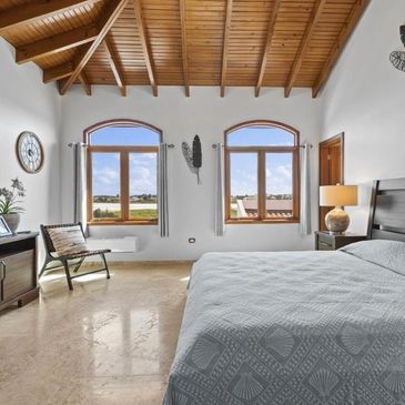 The villa offers 5 bedrooms and 4.5 bathrooms across two levels. Two on the ground floor, Three on the top floor, bright and spacious bedrooms each feature their own ensuite bathroom, providing comfort and privacy.